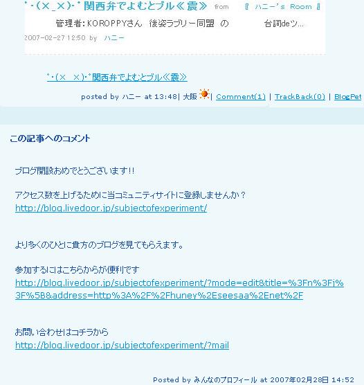 『 ご存知ですか?“みんなのプロフィール”コメントスパム 』
